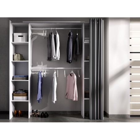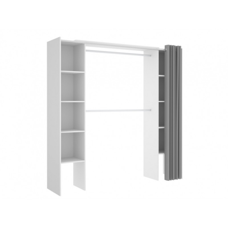 Composé de 10 niches et de 2 penderies, le dressing extensible DORIAN sera votre allié pour ranger l'ensemble de votre garde-robe tout au long de l'année. Son rideau gris apportera la touche de modernité à ce dressing à la fois fonctionnel et élégant.