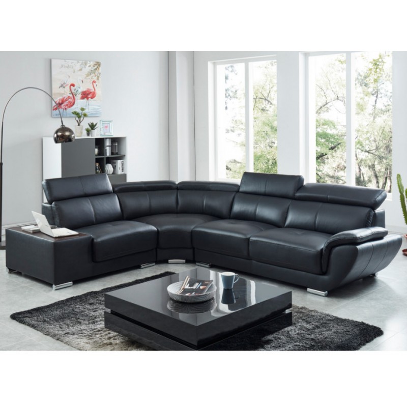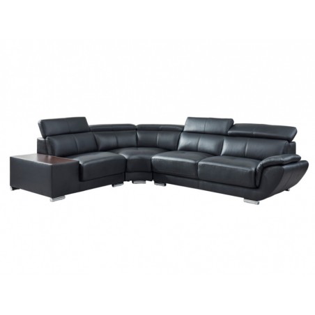 Table basse intégrée, têtières relax, cuir supérieur : le canapé d'angle NAHIA combine parfaitement élégance et praticité! N'hésitez plus, voici le canapé qu'il vous faut!