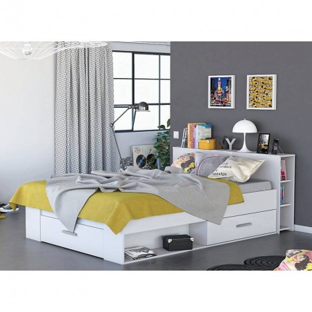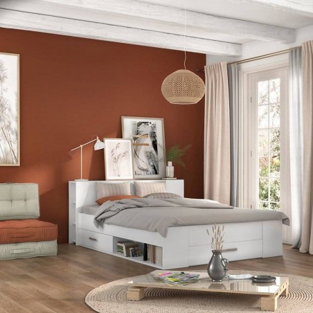 Le lit Dana est esthétique et pratique. Avec ses nombreux rangements, rangez vêtements, linge de lit et objets en tous genres sans perdre de l’espace. Sa tête de lit avec son étagère et ses niches intégrées vous permet d’y ranger vos livres, smartphone, lunettes et autres.