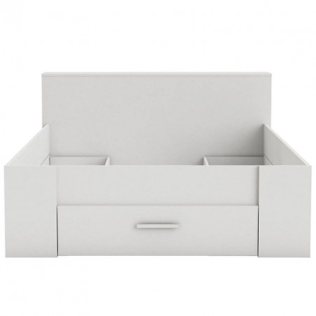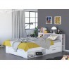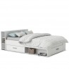 Le lit Dana est constitué d'une tête de lit avec étagère sur toute la largeur ainsi que de 3 niches sur chaque côté. Les pans latéraux comprennent une grande niche et un tiroir monté sur coulisses à galets et le pied de lit un tiroir monté sur coulisses à galets également.