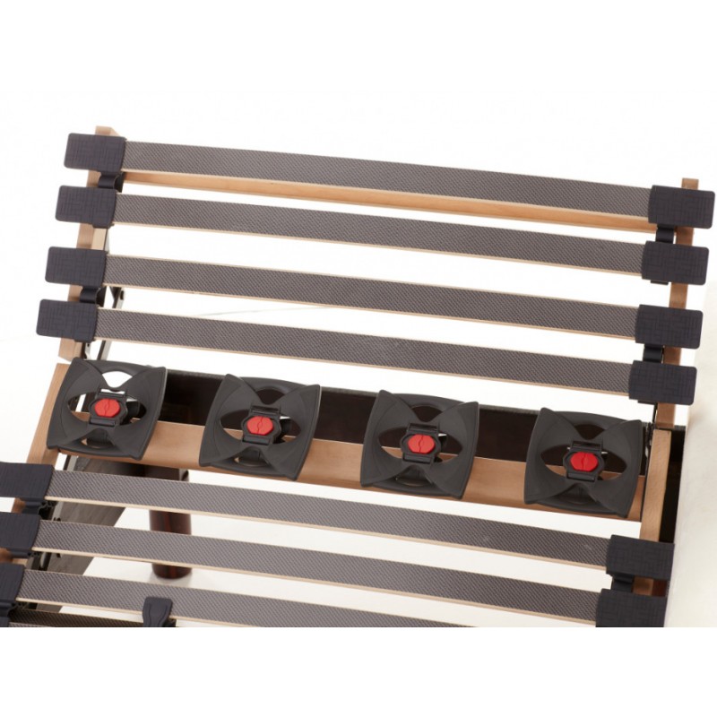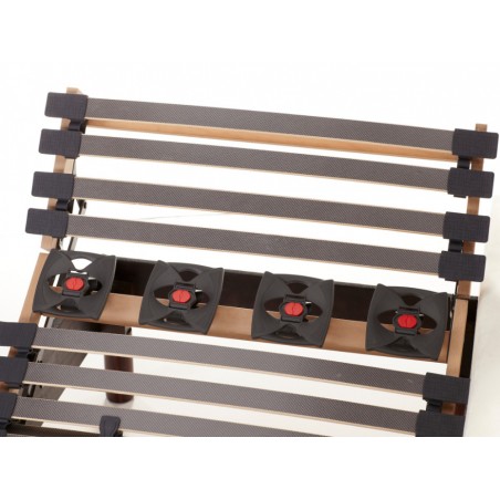 Les lattes assurent un maintien stable et équilibré. Les plots en zone épaule permettent grâce à leurs curseurs de fermeté d'affiner plus précisément votre confort selon votre morphologie.