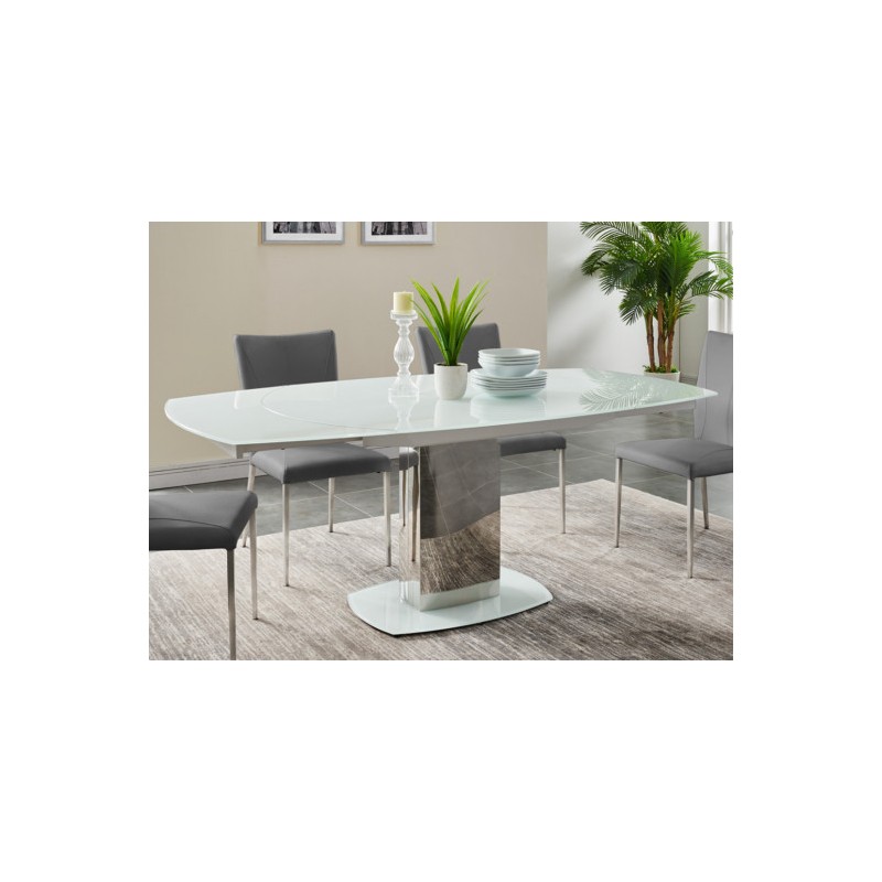 Le plateau en verre trempé peint d’épaisseur 10mm confère à la table TALICIA éclat et élégance. Cette table séduit par sa structure épurée et robuste en acier inoxydable. Son plateau extensible, en verre trempé d’une longueur de 130cm, pivote sur 360° pour atteindre une longueur de table de 190 cm. Vous passerez, sans efforts, d’une table de 6 couverts à une table de 8 couverts pour des repas très conviviaux. Son allure, tout en finesse, ravira les amoureux de mobilier moderne et contemporain.
