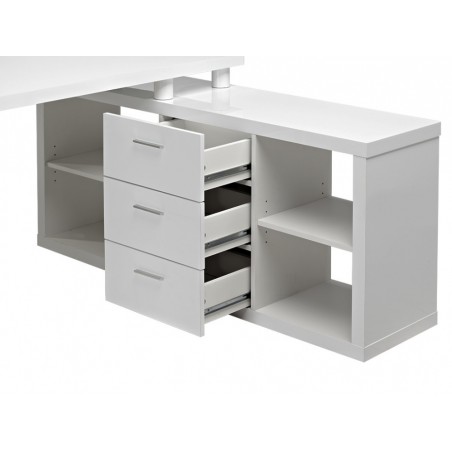 Doté de grands espaces de rangement latéraux, ce bureau blanc vous permettra de garder à portée de main tous les éléments nécessaires à vos séances de travail. Ergonomique et esthétique, ALDRIC III le bureau qui tombe à pic!
