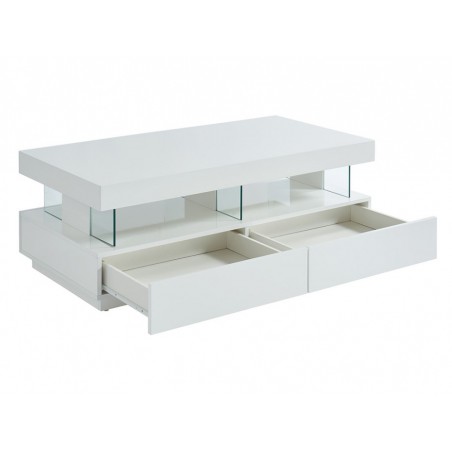 Très fonctionnelle grâce à ses deux niches et deux tiroirs, cette table basse se démarque aussi par ses LEDs multicolores, qui en font un véritable élément de déco design et audacieux !